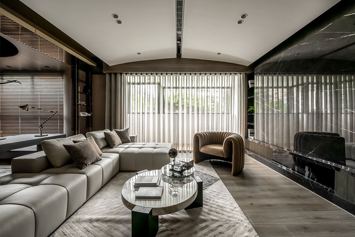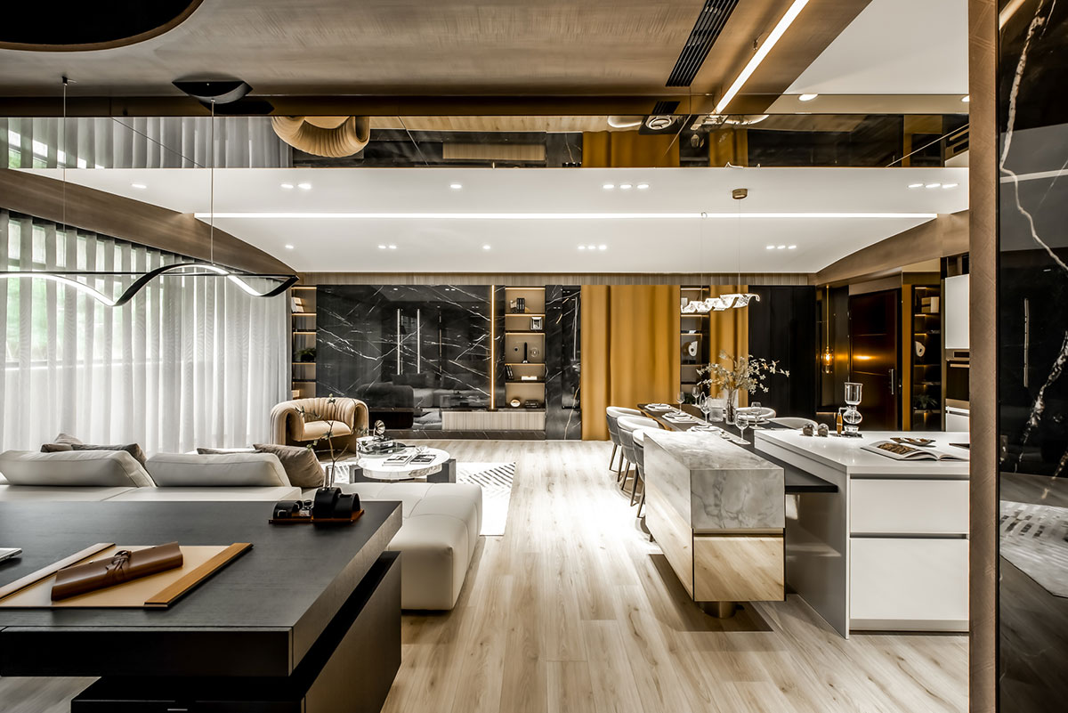 This strategically designed model home provides functional living spaces and ample storage solutions by creatively exploiting various elements, such as sleek porcelain slabs, richly textured eco-friendly panels, and modular cabinets. The design gracefully fulfills the developer’s aesthetic vision and display objectives, all within a reasonable budget and material selection. It enables the sales team to showcase and explain the features in person while offering visitors an immersive experience of their future living environment, setting a benchmark for the ideal home.